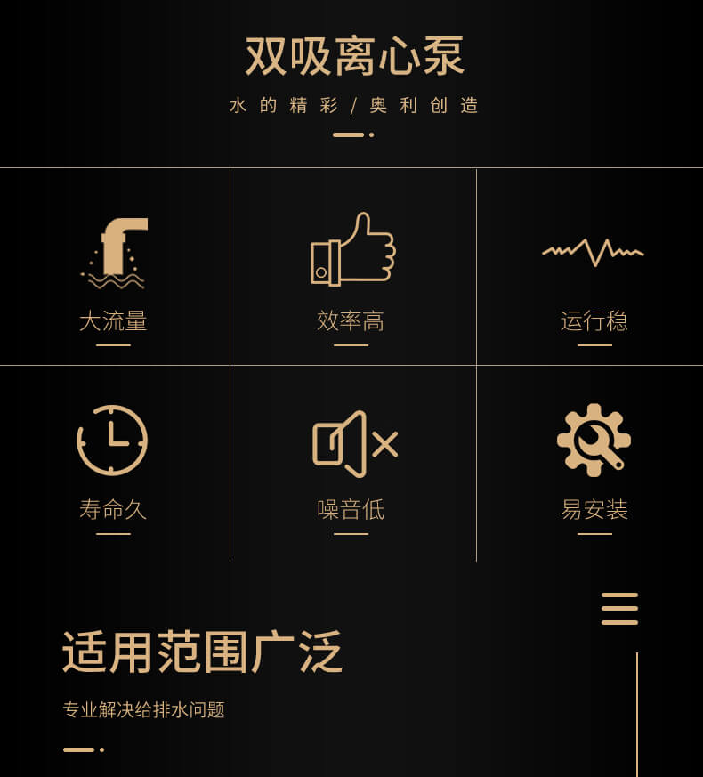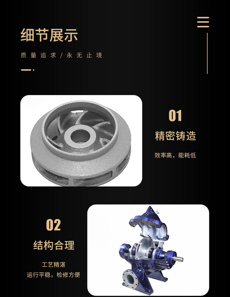 ALNS型雙吸泵為新一代高效節(jié)能單級雙吸中開式離心泵,主要適用于自來水廠、空調循環(huán)用水、供熱管網(wǎng)系統(tǒng)、建筑供水、灌溉、排水泵站、電廠、工業(yè)供水系統(tǒng)、消防系統(tǒng)、船舶工業(yè)、礦山給排水等輸送液體的場合,是SH、S、SA、SAP型中開雙吸泵的全面換代產品,具有高效節(jié)能、運行穩(wěn)定、外觀優(yōu)美、壽命長久等特點。