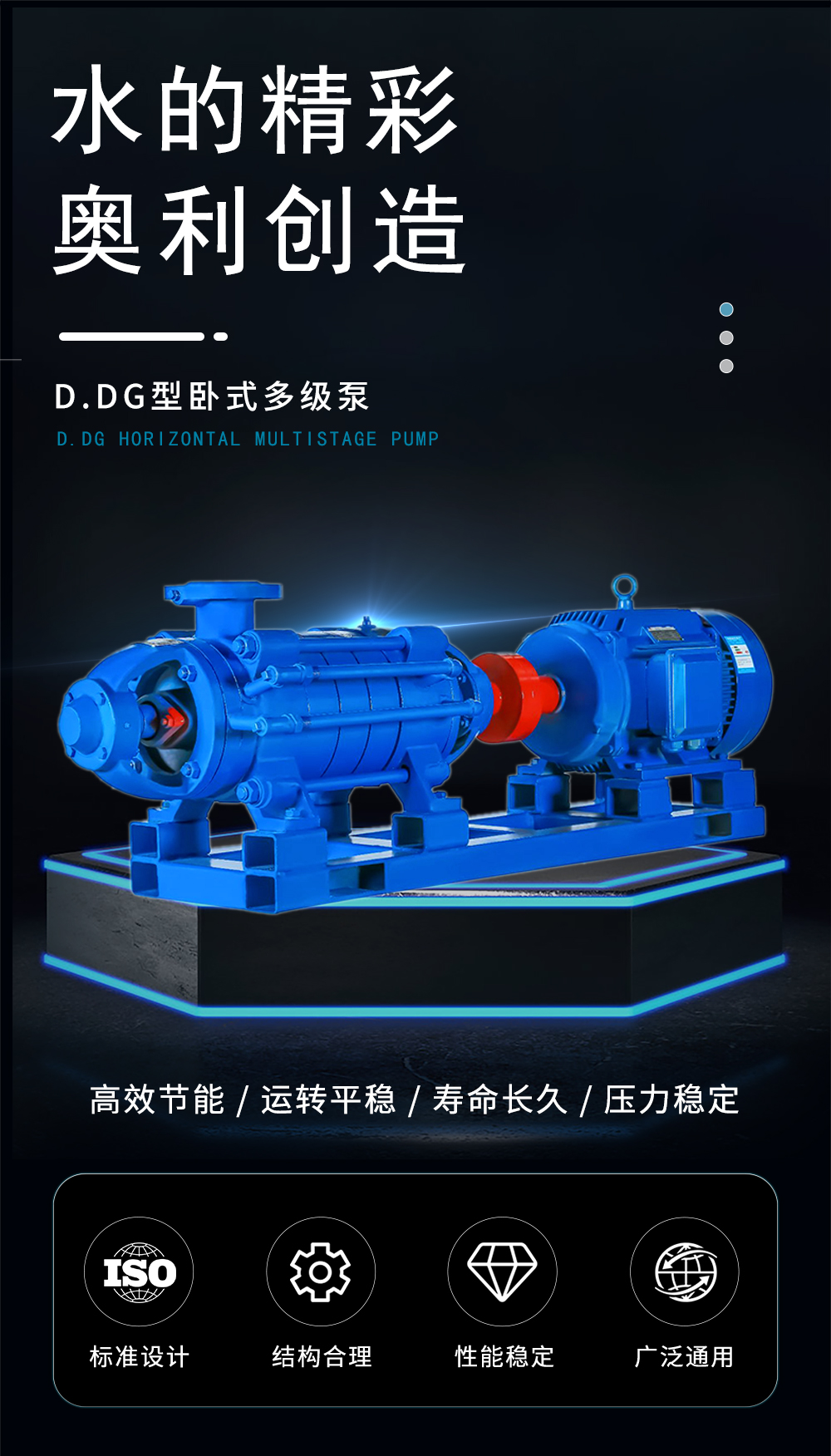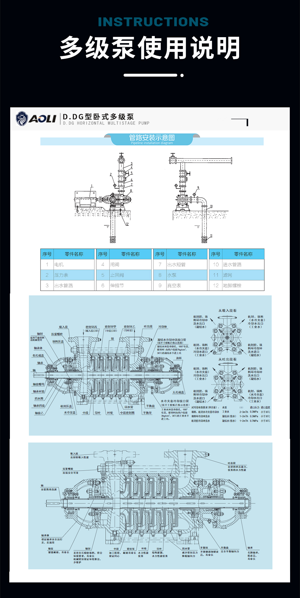 D型臥式多級(jí)泵系單吸多級(jí)分段式離心泵,供輸送清水或物理化學(xué)性質(zhì)類(lèi)似于水的其它液體,液體的溫度不得超過(guò)80℃。具有效率高、性能范圍廣、運(yùn)行安全平穩(wěn)、噪音低、壽命長(zhǎng)、安裝維修方便等特點(diǎn)。也可以通過(guò)改變泵過(guò)流部件材質(zhì)、密封形式和增加冷卻系統(tǒng)用于輸送熱水、油類(lèi)、腐蝕性或含磨粒的介質(zhì)。產(chǎn)品執(zhí)行JB/T1051-93《多級(jí)清水離心泵型式與基本參數(shù)》標(biāo)準(zhǔn)。