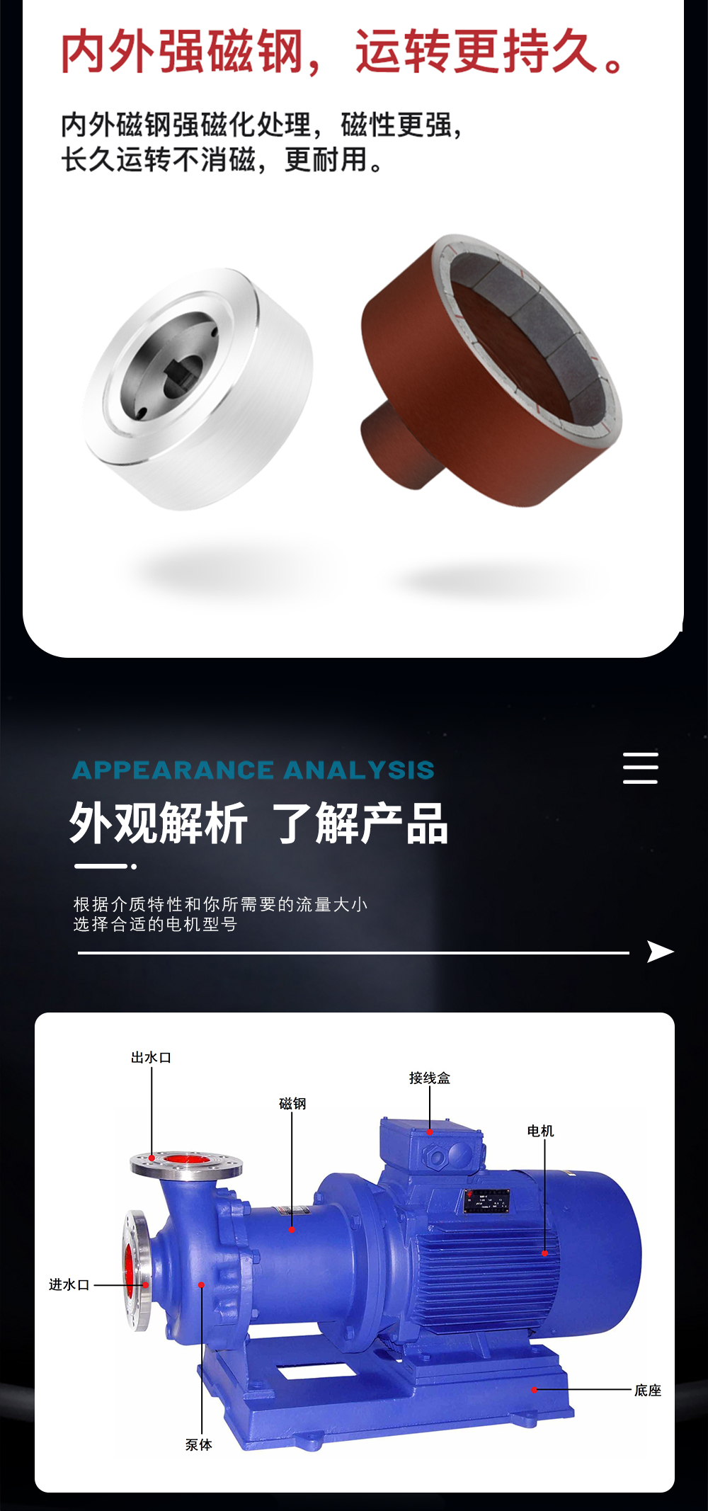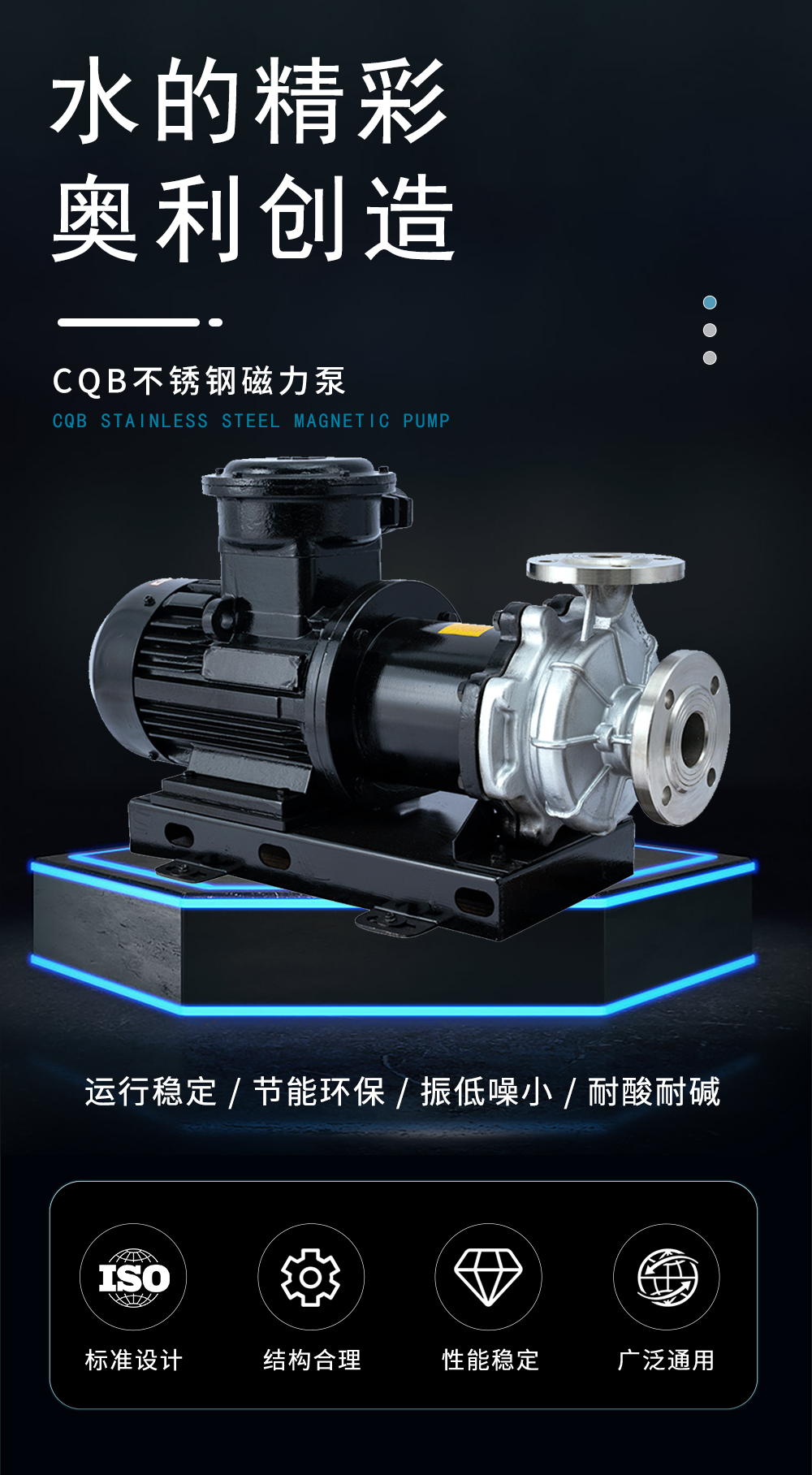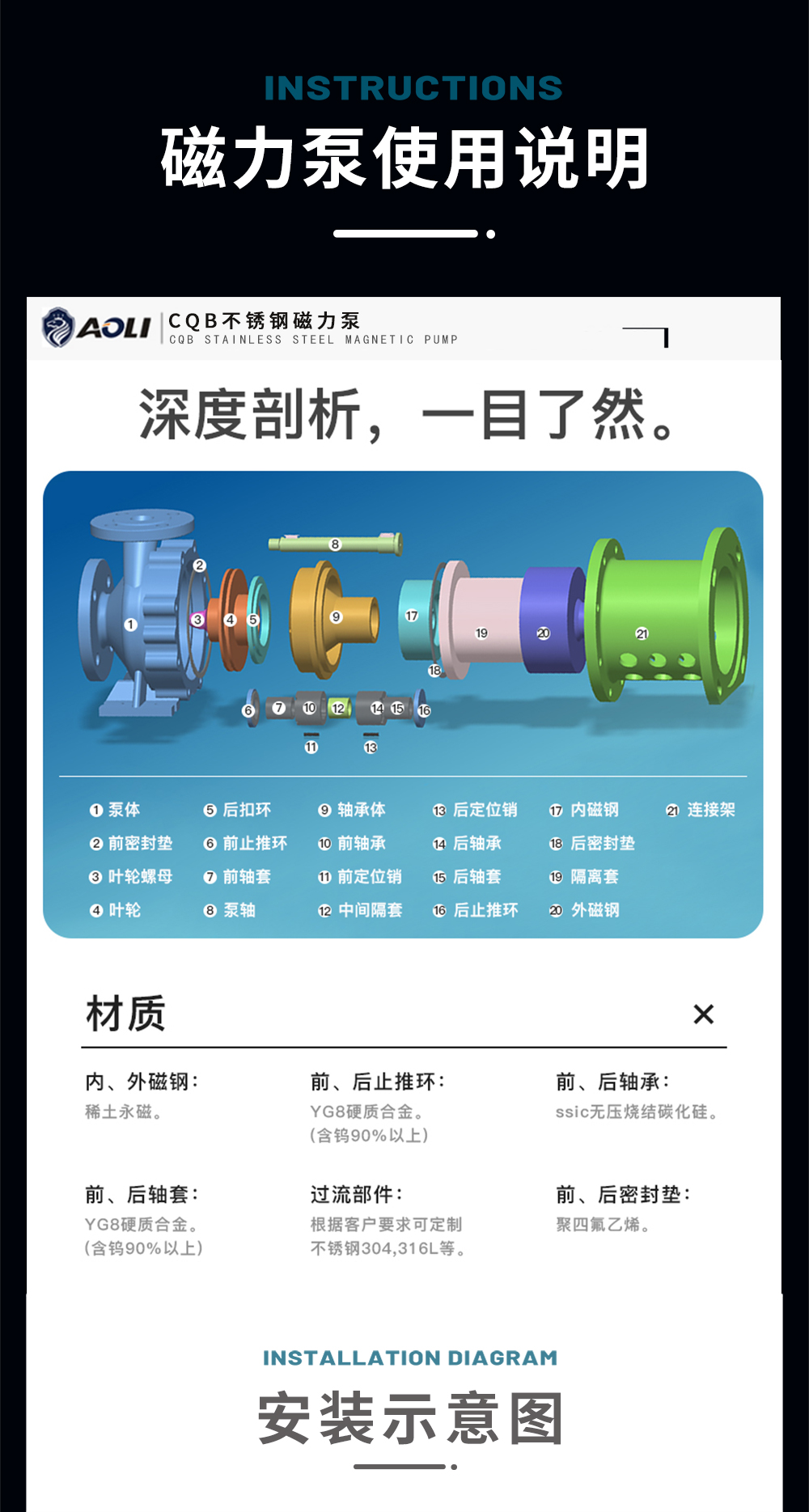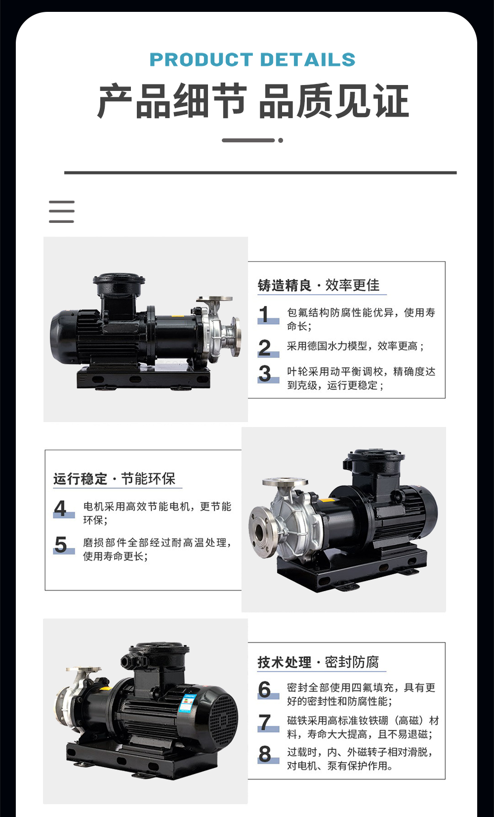 CQB不銹鋼磁力泵運(yùn)用CFX、CFD相結(jié)合分析計(jì)算得到高性能的水力模型,過(guò)流部件采用304、316L等優(yōu)質(zhì)不銹鋼材質(zhì),內(nèi)、外磁轉(zhuǎn)子選用高磁能積、高矯頑力的稀土永磁制造,具有高效節(jié)能、介質(zhì)適用面廣、耐高溫、磁性強(qiáng)、不退磁等優(yōu)點(diǎn),是應(yīng)用磁力耦合實(shí)現(xiàn)無(wú)接觸傳動(dòng)、無(wú)動(dòng)密封的新型高品質(zhì)磁力傳動(dòng)離心泵。全密封、無(wú)泄漏、清潔環(huán)保、運(yùn)行靜音低振,是輸送易燃、易爆、腐蝕、貴重液體的首選用泵。因節(jié)能環(huán)保、可靠安全,并替代進(jìn)口為用戶(hù)節(jié)約大量成本。廣泛應(yīng)用于化工、制堿、石油、醫(yī)藥、衛(wèi)生、農(nóng)藥、造紙、染料、污水處理等領(lǐng)域。