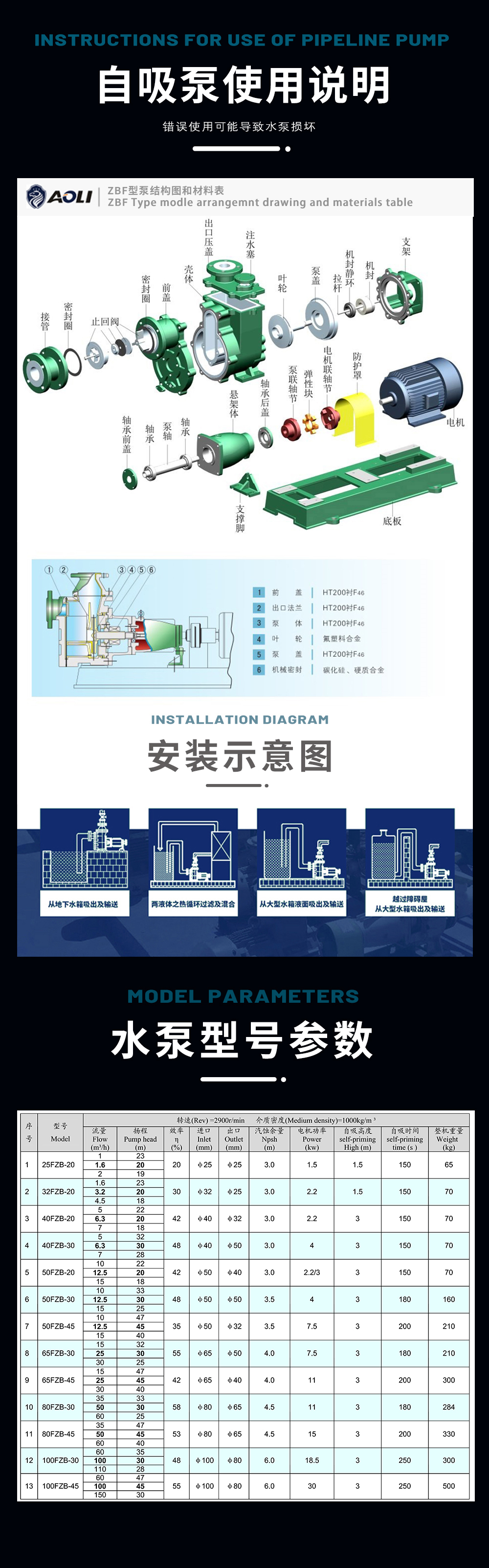 ZBF系列高性能氟塑料自吸式離心泵簡稱“ZBF襯氟自吸泵”,突破了傳統(tǒng)自吸泵受氟塑料襯里模壓工藝的限制,將儲液腔、氣液分離室與蝸殼流道制成一體,擁有較大的氣液分離室、通暢的回流通道,進(jìn)口設(shè)計有先進(jìn)可靠的止回閥,高低壓區(qū)密封可靠,排氣時間明顯縮短、進(jìn)口抽空力強,大幅提升了自吸性能,其自吸高度可達(dá)5米(常壓清水時)。