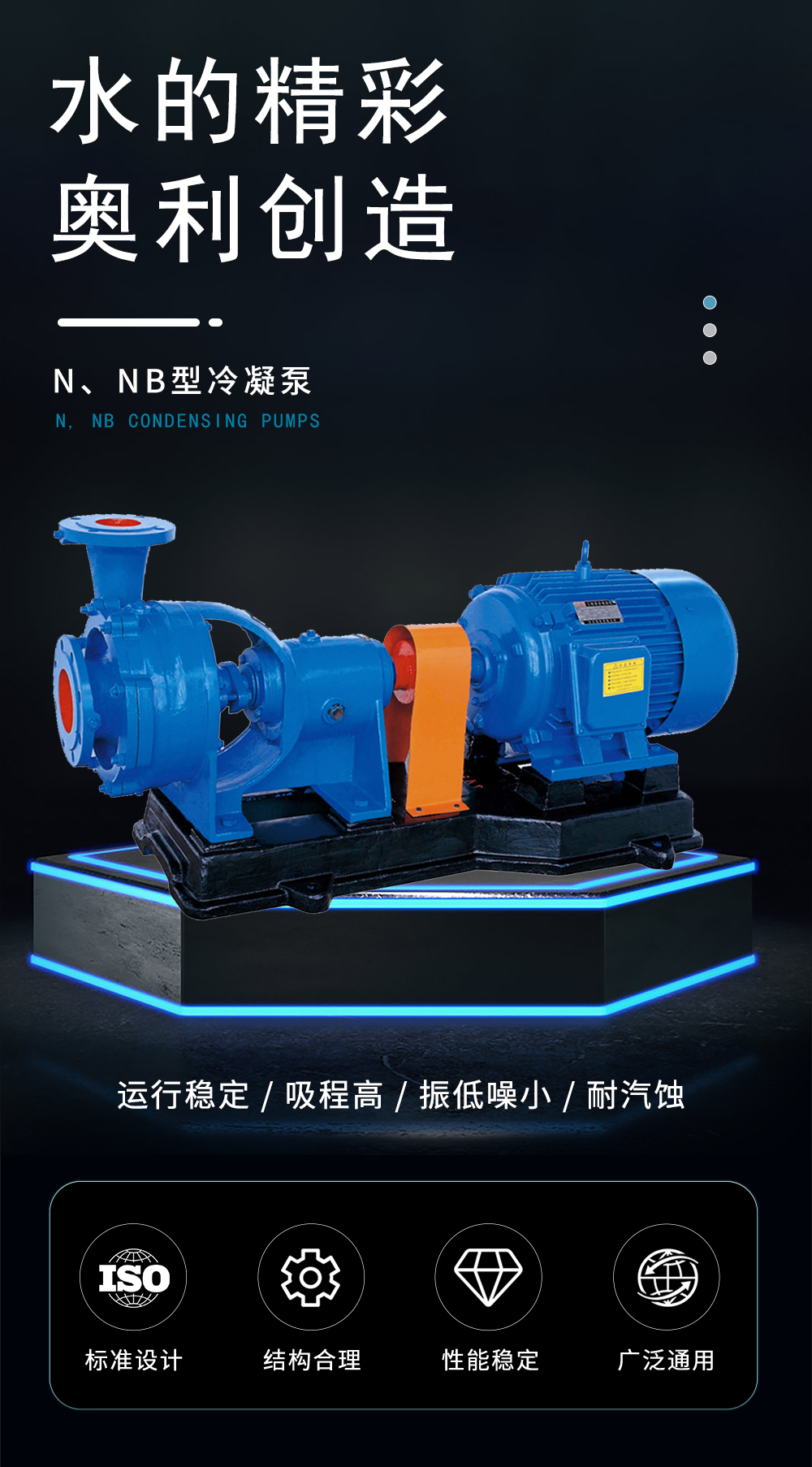 N、NB型凝結(jié)水泵比一般水泵有較好的汽蝕性能之特點(diǎn)。廣泛適用于冶金、發(fā)電廠、精煉廠、石油化工、低溫工程中,汽輪機(jī)冷凝水的抽送及高真空度要求密閉容器的液體抽送。亦可用在介質(zhì)與凝結(jié)水相似的其他地方。