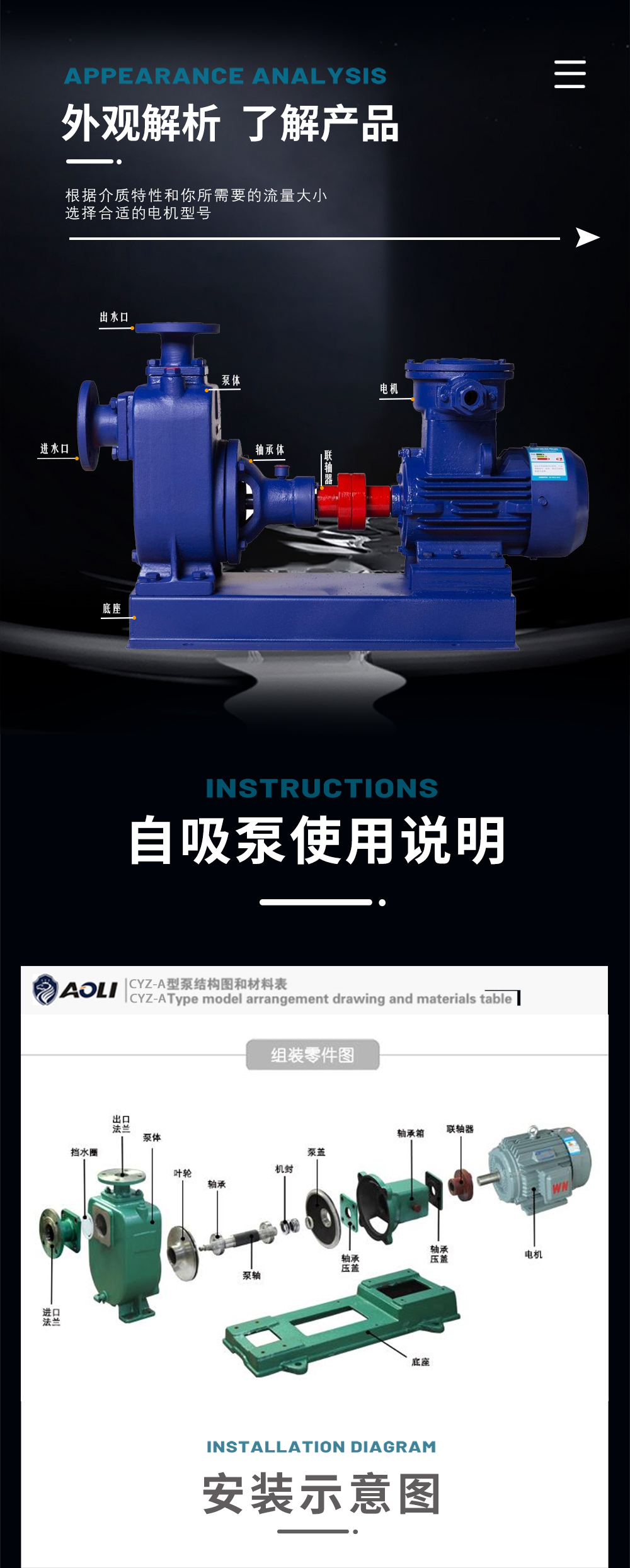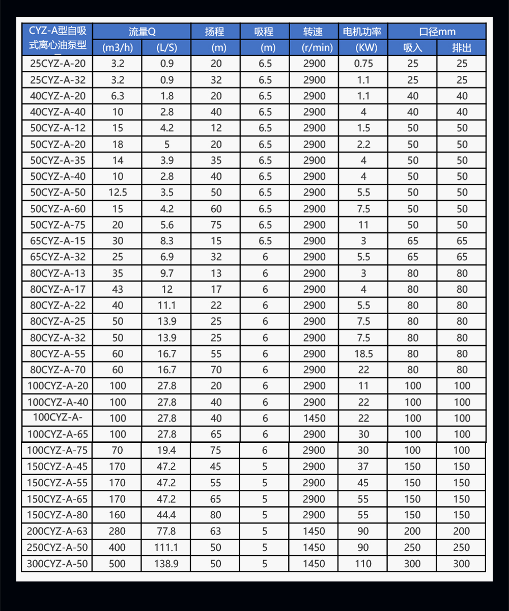 CYZ-A型自吸式自吸泵是 根據(jù)國內(nèi)外有關(guān)技術(shù)資料經(jīng)消化、吸收、改進后研制而成的最新泵類產(chǎn)品,該自吸泵適用于石油行業(yè)、陸地油庫、油罐車的理想產(chǎn)品,并適合于作船用貨油泵、艙底 泵、消防泵和壓載泵及機器冷卻水循環(huán)等,分別輸送汽油、煤油、柴油、航煤等石油產(chǎn)品和海水、清水,介質(zhì)溫度-20℃-80℃,如輸送化工液體可改用耐腐蝕 機械密封。