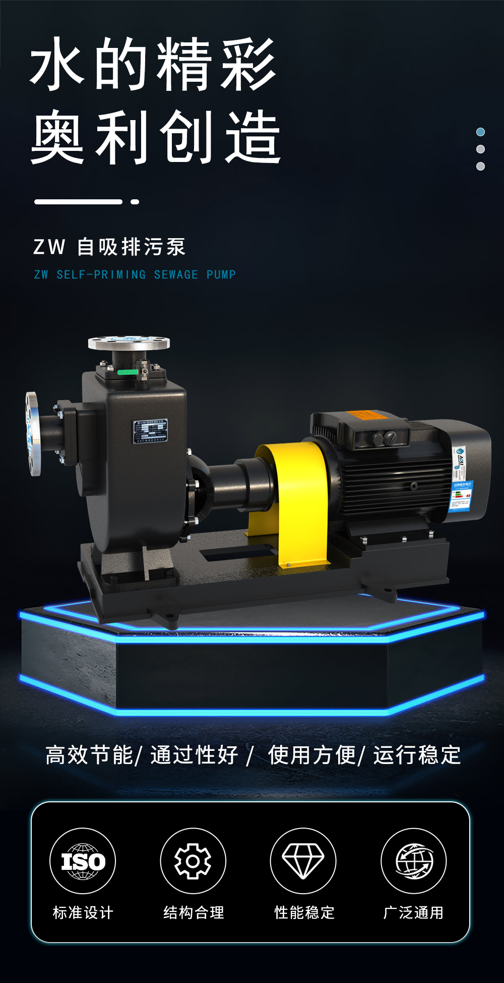 ZW型自吸式無堵塞排污泵,是本司根據(jù)ZX型自吸離心泵及QW型潛水排污泵的結(jié)構(gòu)及性能,借鑒國(guó)外同類產(chǎn)品之優(yōu)點(diǎn),研制而成的集自吸及排污于一身的新型泵種。既可象一般清水自吸泵那 樣不需安裝底閥,不需灌引水,又可抽吸含有大顆粒固體直徑為出口口徑的60%和纖維長(zhǎng)度為葉輪直徑1.5倍的污物、沉淀物、廢礦雜質(zhì)、糞便處理及一切工程 污水物和膠質(zhì)液體,完全減輕人力的勞動(dòng)強(qiáng)度,而且安裝使用方便,極少維修,性能達(dá)到國(guó)際先進(jìn)水平,具有廣闊的應(yīng)用市場(chǎng)和發(fā)展前景。